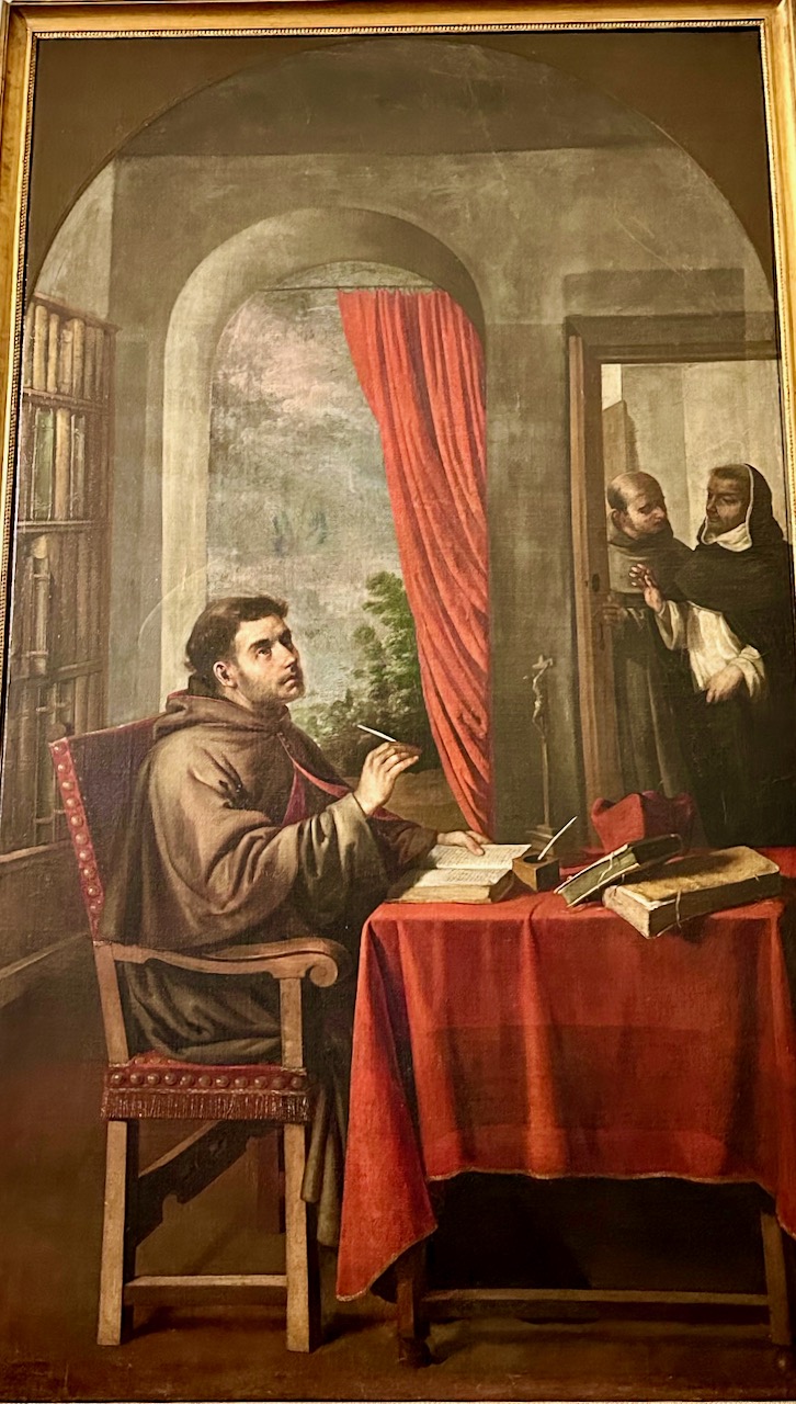 At the end of this hallway on the left is the famous painting Saint Bonaventure Receiving the Visit of Thomas Aquinas by Francisco de Zurbarán.