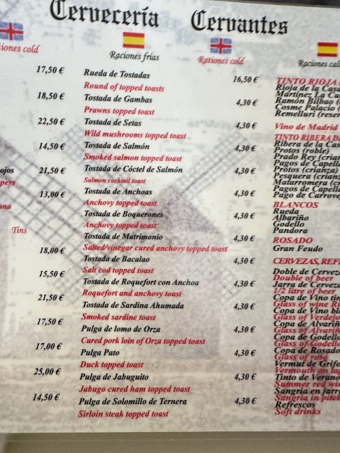 It was time for lunch, and keeping with the Cervantes theme, we returned to our neighborhood and Cervantes Cervecería, a tapas place our bartender Sebastian had recommended.