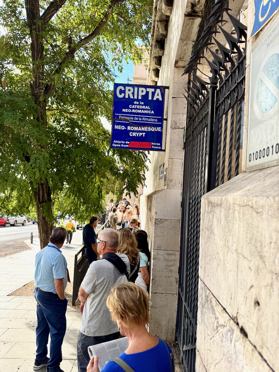 It was not quite 5 p.m. when we exited, and Tracy reminded me, “You know the crypt opens at 5.” It was less than a ten minute walk to Cripta de la Almudena. You could see the Almudena Cathedral in the distance.