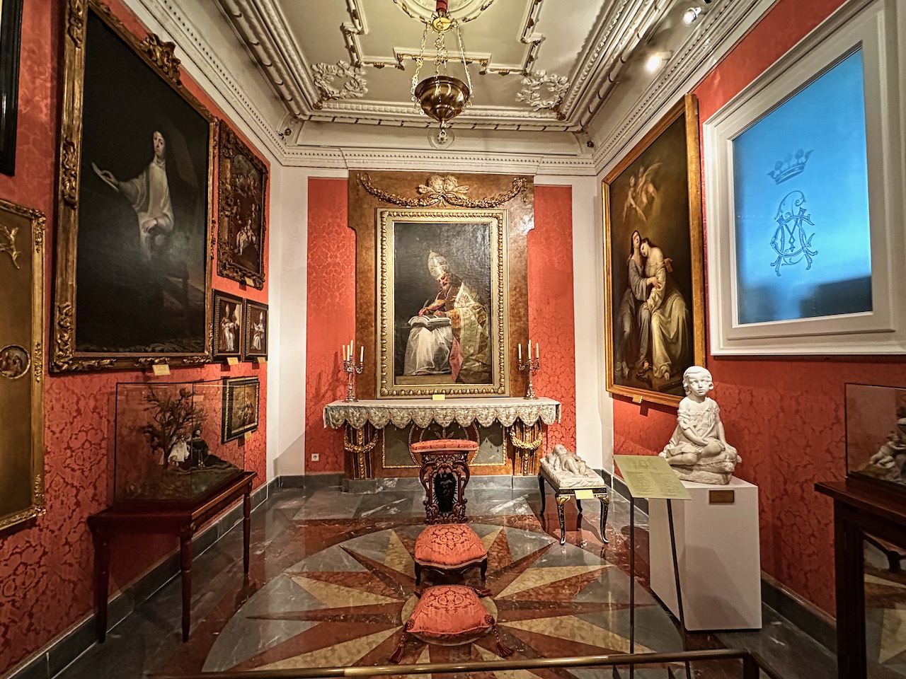 This palace houses masterpieces from Velázquez, El Greco, Ribera, Rubens and Titian, along with historic documents like letters from Christopher Columbus. The palace was severely damaged by a fire during the Spanish Civil War and subsequently rebuilt, but thankfully many pieces of the collection were saved. We entered the Goya Room.