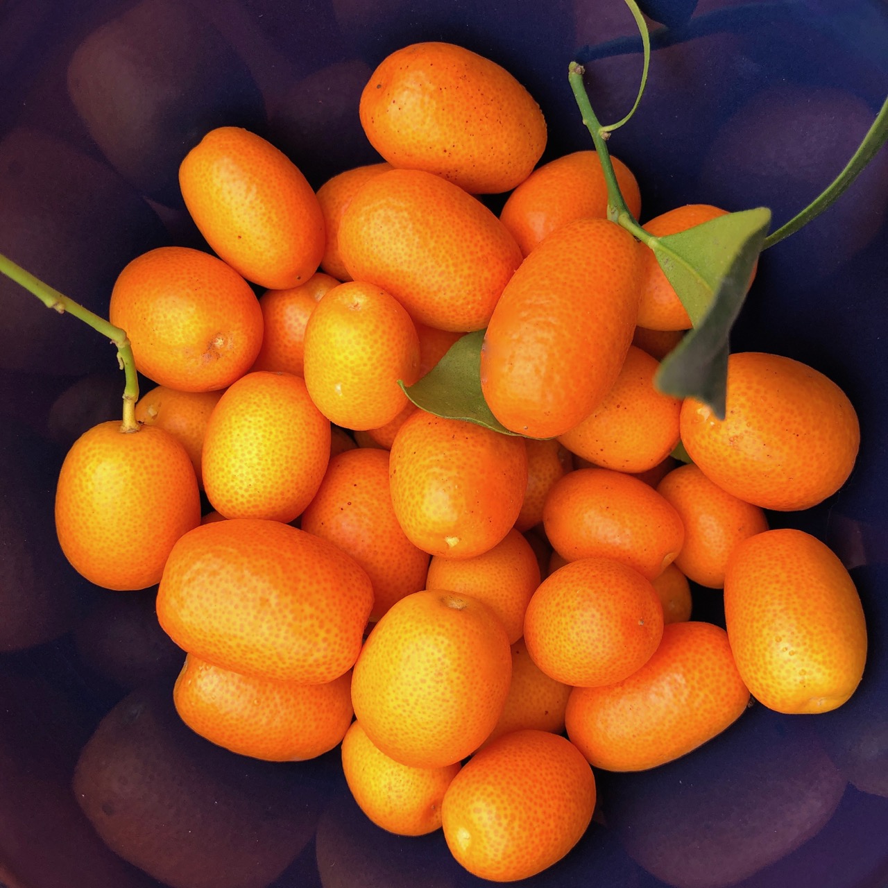 (I had to get those kumquats off the tree before the Corgis … looking slightly guilty … and our visiting squirrel … he eats well at our house … decided to make them part of their 5 A Day program.)