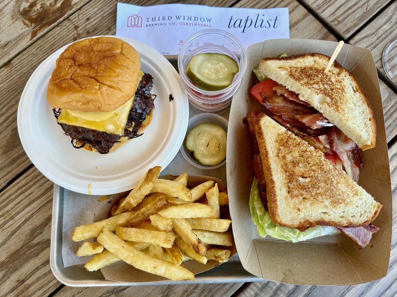 This location has a smaller menu than its sister restaurant in Santa Barbara. I ordered the Wagyu smashed cheeseburger and a side of super crispy Belgian-style fries, while Tracy went with the BLT, house-baked pain de mie, Givens Farms heirloom tomatoes, house-smoked maple bacon, iceberg lettuce, and mayo. We also grabbed a brown sugar Rice Krispy treat for the road… um, dessert, as it didn’t make it to the car. There is also a variety of Third Window lagers, beers and ales available on tap or from the refrigerator case.