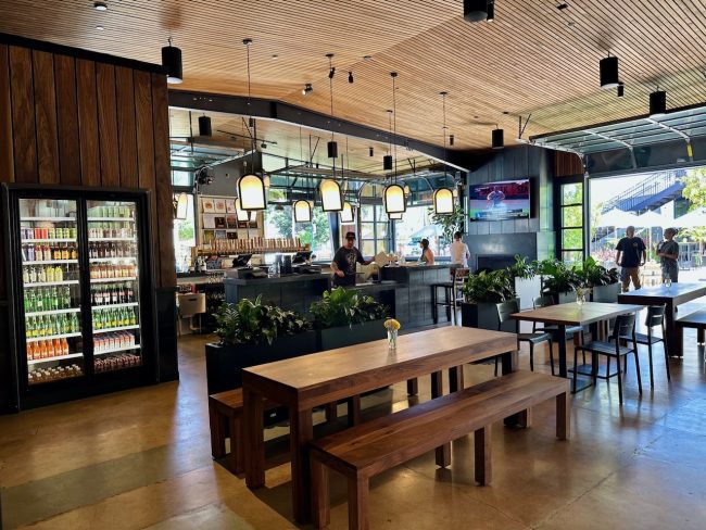 Lately, we have been dining in Carpinteria at a relatively new space, and we’ve been cheating on our favorite Carp restaurant, Teddy’s by the Sea (please don’t tell them). Our latest hangout is Linden Square, a food hall that opened in late-May 2025 and currently has three restaurants: Corazon Cocina Sur, Third Window Brewing Company and Tina’s Pizza. Plus its patio is dog friendly!