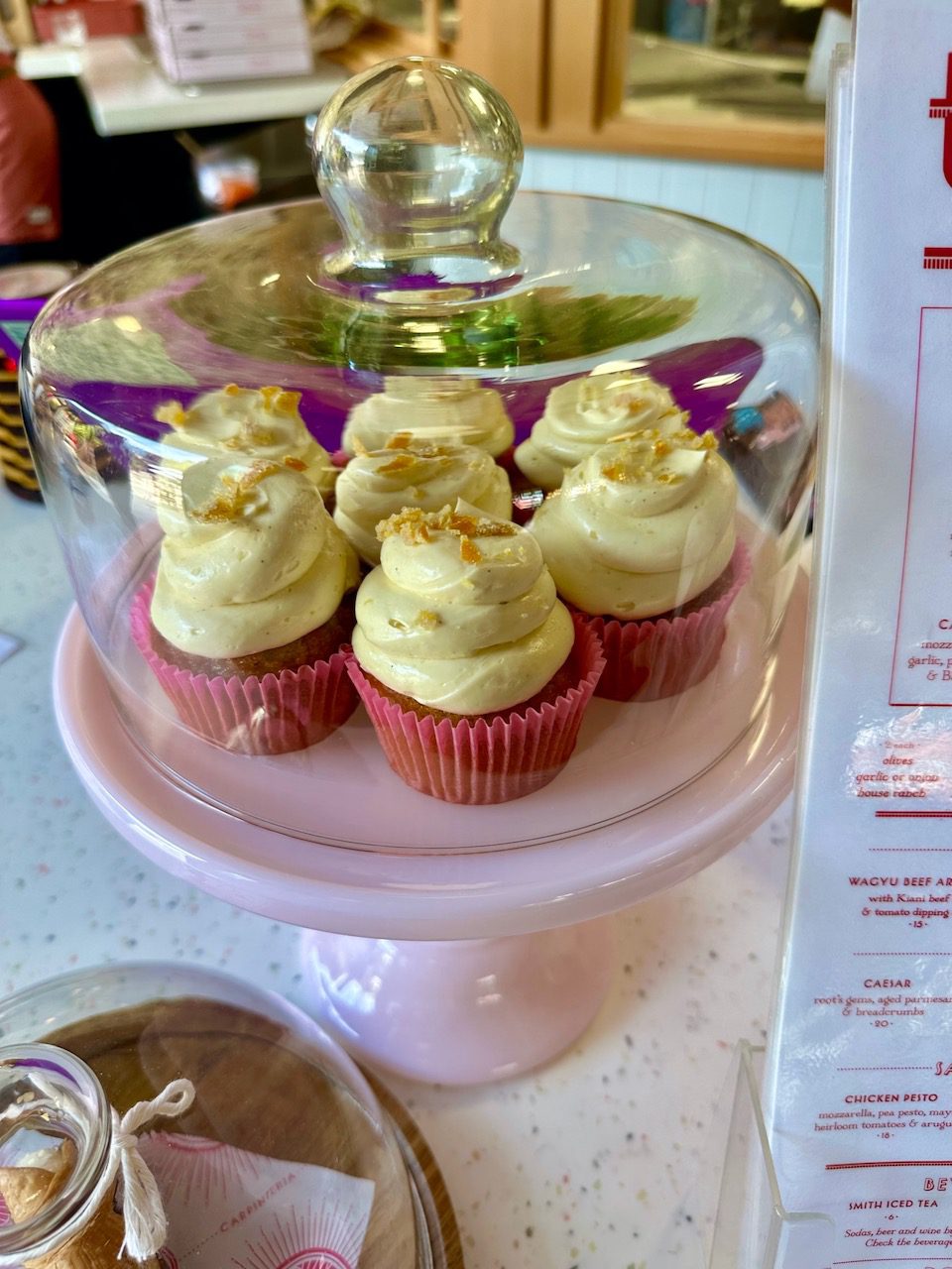 For dessert, we tried an olive oil cup cake with orange buttercream and candied orange which actually made it all the way home!