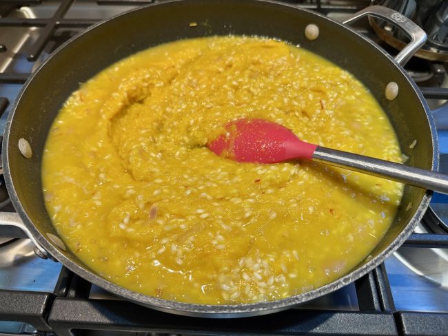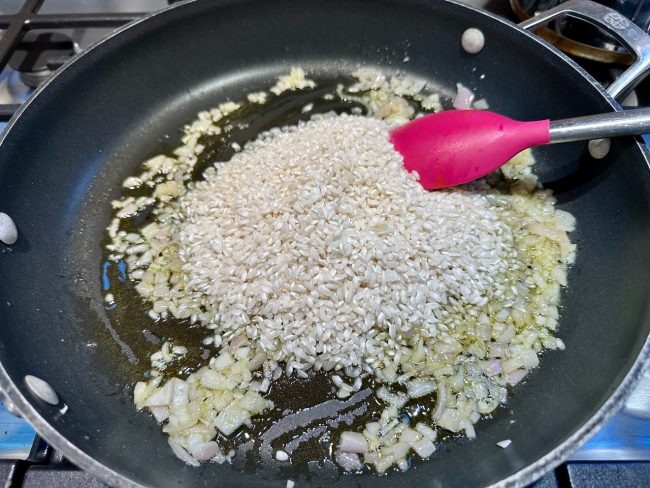 Quick note about the risotto rice, Arborio is the most widely available risotto rice in the U.S. but I prefer Carnaroli which, according to now defunct Fine Cooking, “is the preferred risotto rice in most regions in Italy except the Veneto” and “said to produce the creamiest risotto.”